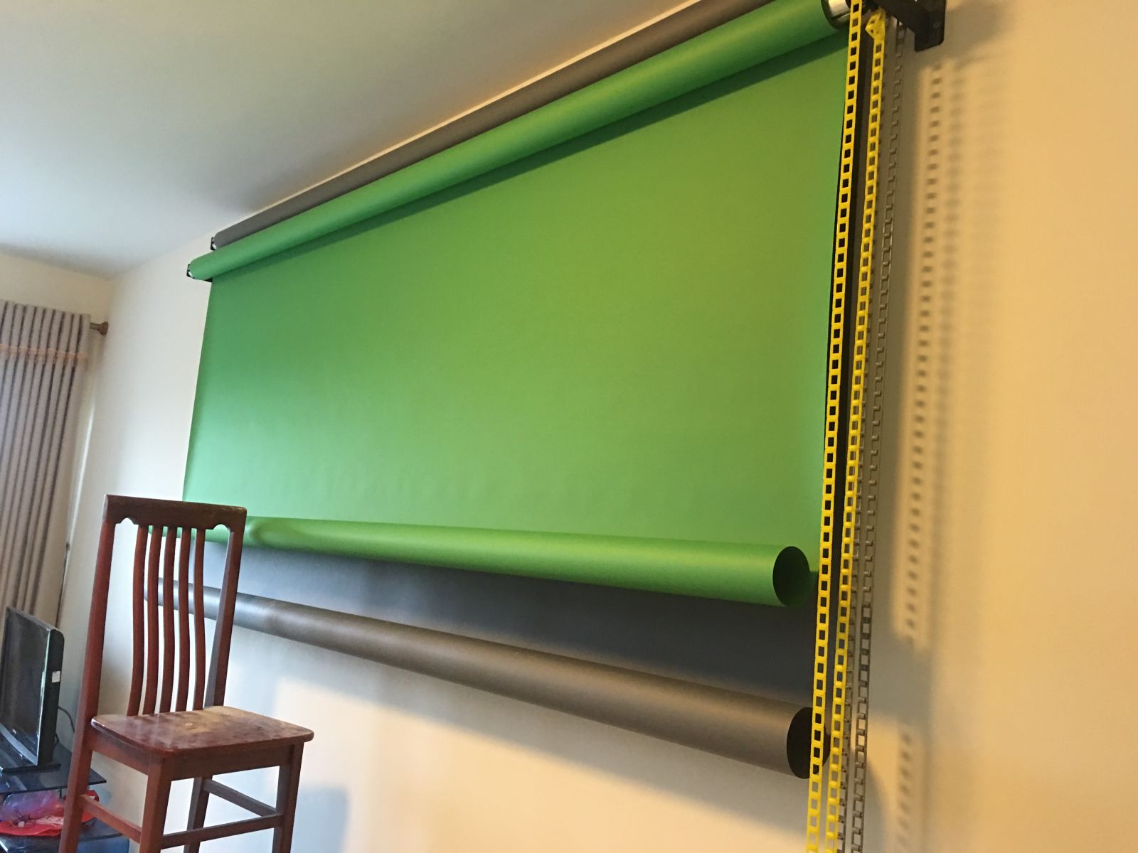 Với cơ chế kéo xích bằng tay phông của bạn sẽ tự động lên xuống tùy chỉnh theo ý thích của riêng mình. Phù hợp nhất với những phòng nhỏ hẹp mà vẫn muốn giữ nguyên bề rộng của phông giấy 2,72m và chi phí hợp lý rẻ hơn moto.